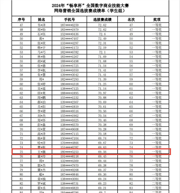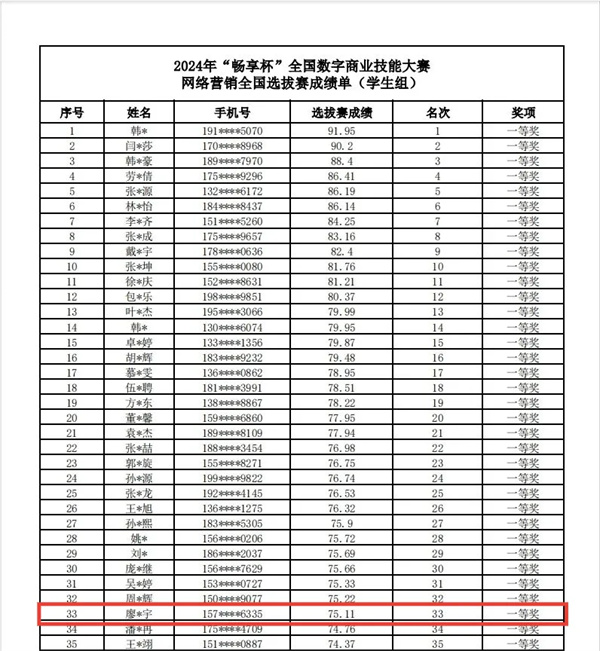 11月30日,2024年“畅享杯”全国数字商业技能大赛网络营销选拔赛采用线上形式进行,我校学生从500多参赛选手中脱颖而出,斩获一等奖,实现了我校电商专业在该领域赛项中的又一项突破!