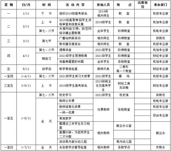 第十周活动安排表【2021-11-1】