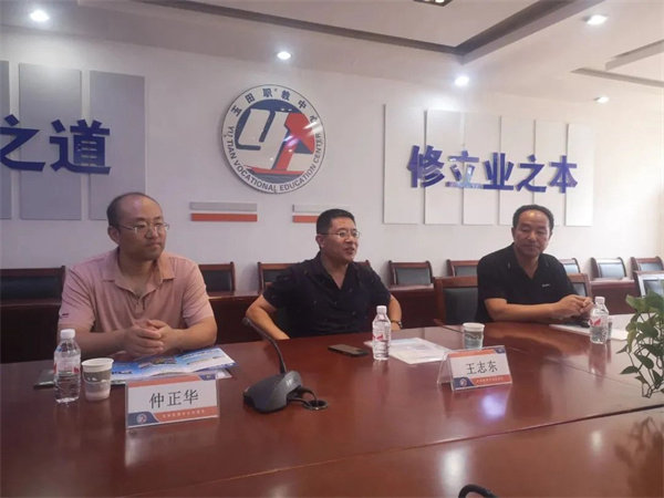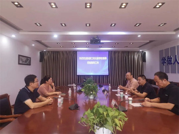 9月18日上午,张家口市职教中心副校长王志东、信息中心主任仲正华,和张家口怀安县职教中心副校长刘俊齐聚我校考察交流工作,校长张婧、副校长张江陪同交流。
