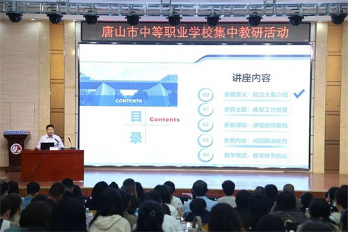 活动共分两个半程进行,上午是集中培训,全国职业院校技能大赛国赛裁判、河北省职业院校教学能力大赛专家库专家汤哲做了国赛一等奖获奖作品分享,让与会人员领略了国赛一等奖的风采,也对国赛作品有了清晰的认知和攀升的标尺;河北省职业院校学生技能大赛组委会办公室副主任张永林解读了教师教学能力比赛和作品的突破点,张主任以崭新的视角对参赛资料的准备和打磨进行详尽的指导,尤其针对参赛作品怎样脱颖而出,实现质的提升给出了切实可行的方案;河北超星信息技术有限公司代表曹丽博做了题为“信息化支撑下的教学模式创新——基于一平三端在教学中的应用”专题讲座,为教师教学信息化提供了新的思路。