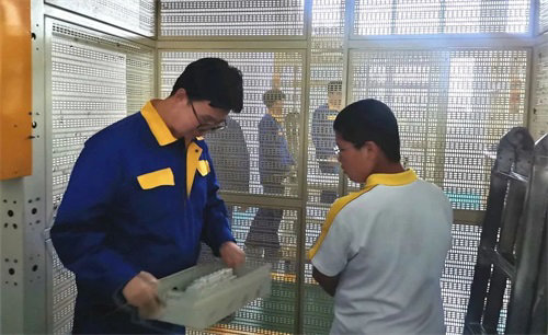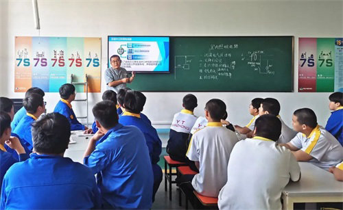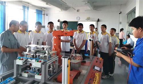 活动中,机电专业部姚建东老师讲解了电路的工作原理、线号标注及接线图,职中学生一对一服务,热情帮助三中学生布线;牛亮老师讲解了机器人虚拟仿真实训、工业机器人异形插件工作站实训,带同学们了解涂胶,码垛,异形芯片分拣的过程;江丽颍老师耐心辅导,同学们通过手动控制机械手实现伸缩和升降,在动手实践中体验了劳动的快乐,也对技能的神奇魅力有了初步的认识。