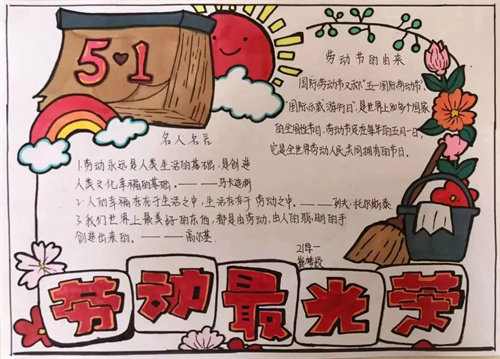 本次活动主要包含六项内容,一是了解“五一”国际劳动节的由来,体会劳动最光荣的道理;二是围绕“做最美的劳动者”办一期手抄报;三是“我的家我打扫”扮靓我家卫生清扫;四是拍摄最美劳动者微笑图片;五是与家人一起劳作,参与农耕,体验劳动的辛苦;六是学习劳动相关手语舞。学生在形式多样的活动中体验了劳动的艰辛,感受了劳动之美,表达了对劳动者的敬佩之情。