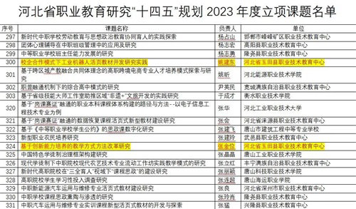 榴月之末,捷报又传。5月26日,河北省职业技术教育研究所对“十四五”规划2023年度课题立项、河北省职业教育科学研究规划2020、2021年度课题结题鉴定结果进行公示,我校两项课题立项、三项课题结题。