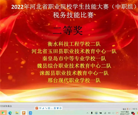 11月27日,河北省教育厅组织了中等职业学校学生技能大赛税务技能比赛,我校两支代表队参赛分获团体二、三等奖。
