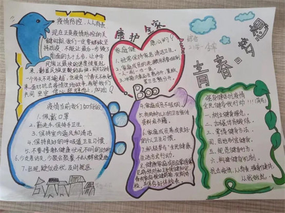 结合专业特点,活动内容主要包括:学习卫生保健相关常识、制作家庭小药箱、参加体育锻炼、学习家庭健身操、制作家庭健康公约精美卡片上墙、学习家庭急救按摩小知识、制作“青春有梦,康护全家”手抄报等。学生们充分利用所学特长,积极参与,积累了丰富的生活健康常识,树立了家庭责任感。学生和家长在活动参与中感受到了浓厚的亲情,找到了幸福感。