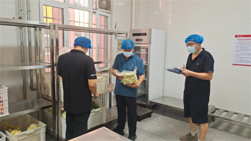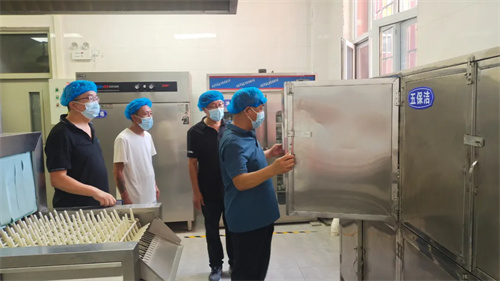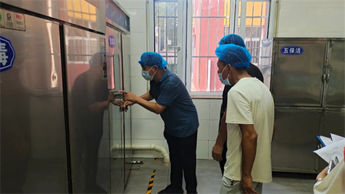 培训结束后,张铁庄书记一行沿着公示栏、洗消间、操作间、面点间、蒸饭间和主副食库房这条路线,对员工健康证、原材料采购、查验、烹饪设施、厨具消毒等方面进行细致的检查,要求食堂管理员严格执行食品安全相关法规,严把质量关,确保每一样食品都符合安全标准,为师生安全用餐保驾护航。