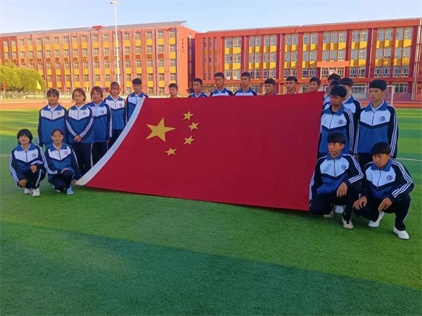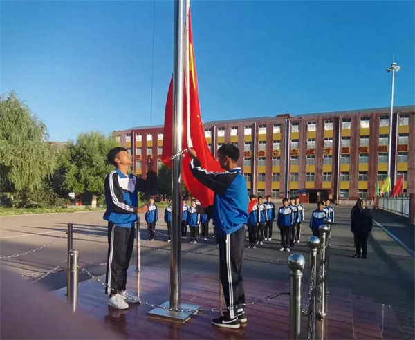 10月1日清晨,22名且末学生在林念思老师的带领下早早来到旗杆下,举行了“向国旗敬礼,向祖国献礼”国庆升旗仪式,学校党委书记张铁庄、政教处主任李跟升一起参加了活动。师生们用这样特殊的方式共同为祖国生日送上美好的祝福。