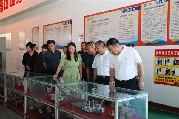 ↑调研组一行在数控实训基地观看学生技能作品
