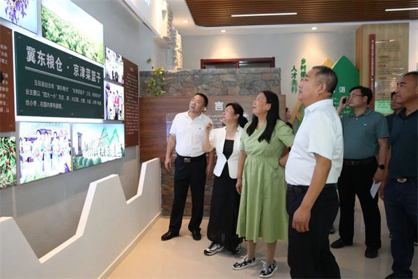 ↑调研组一行在乡村振兴产业学院展室了解工作开展情况