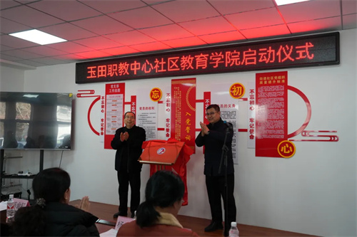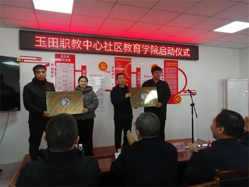 随后,郑志刚与肖桂新共同为“玉田职教中心社区教育学院”揭牌。这一举措,标志着玉田职教中心在职业教育多元化发展道路上又迈出坚实一步。也是我校自 2023 年成功开办老年大学后,深化办学模式、拓展教育服务领域的又一重要成果。