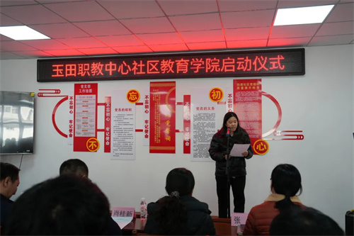 为进一步推动职业教育服务社会的职能,2月26日下午,玉田职教中心社区教育学院启动仪式在繁荣社区办公楼会议室隆重举行。唐山市开放大学校长陈金钉、社区教育办公室主任杨静、社区教育教学科科长孙辉,玉田县无终街道办事处党委书记肖桂新、副主任冯春晖,玉田县教育局一级主任科员郑志刚,玉田职教中心校长张婧、副校长董立新出席仪式。繁荣社区教学点首批面点专业学员及培训教师30余人参加活动。仪式由玉田职教中心校长张婧主持。