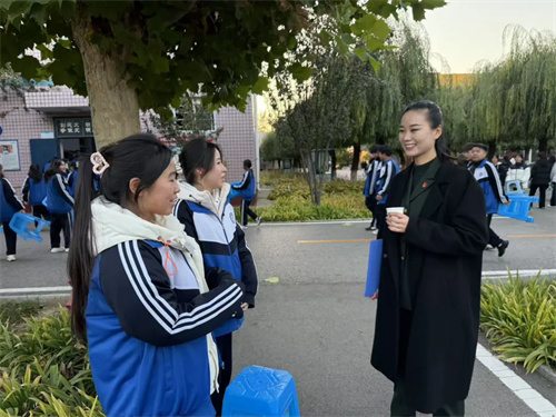 活动伊始,学校党委书记张铁庄、校长张婧、副校长董立新、退役军人事务局副局长李利民及退役军人志愿服务队队长杨浩等人与李思颖在会议室举行了亲切座谈。学校党委书记张铁庄首先代表全校师生对李思颖的到来表示最热烈的欢迎。他表示,李思颖是玉田人民的骄傲,她身上所展现的忠诚信念、过硬作风和奉献精神,是我校学生学习的榜样。他希望以此次活动为契机,搭建军-校共建的桥梁,将部队的优良作风引入校园,共同探索立德树人的新路径。带队领导李利民谈到,让阅兵精神走进校园,就是要用榜样的力量点燃学生的爱国热情,激励他们将来在各行各业为祖国建设贡献力量。双方就未来的深度合作进行了初步探讨,现场气氛热烈而融洽。