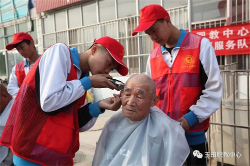 经过一周时间的技术交流和再培训,3月31日下午理发小分队又来到阜金社区翰诚养老院,为高龄老人、孤寡老人义务理发15人。其中一位93岁的老红军满头银发,在队员们娴熟的手法下发型“焕然一新”,老人家非常满意,高兴地说:有了咱们理发小分队,以后理发就方便多了!队员们周到的服务和娴熟的手艺,深受街道、社区领导和老人们的欢迎。