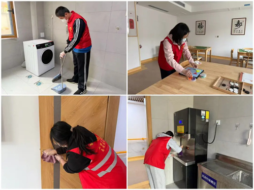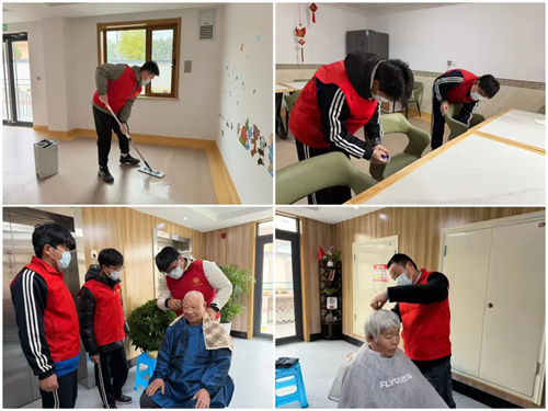 活动现场,志愿者们分为多个小组,有序开展服务。一部分志愿者拿起清洁工具,细致打扫中心内外环境,擦拭设施、整理公共区域,为老人们营造更加干净舒适的生活空间。另一部分志愿者则发挥特长,耐心为老人们提供义务理发服务,现场氛围温馨融洽。