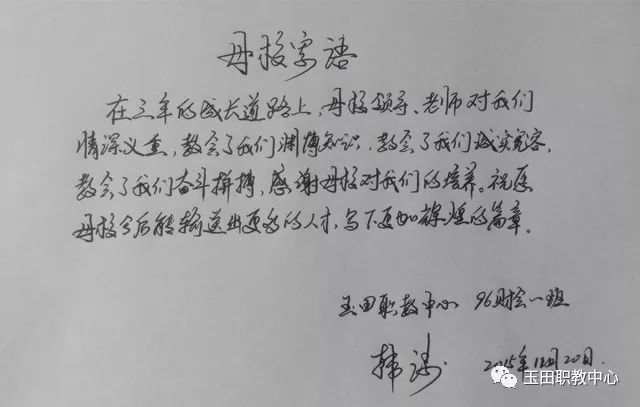 如果说人生是一条路的话,那么成功的人总会在这条路上遇到最好的引路人和同行者,而韩涛的成功之路就是从玉田职教中心开始的。1996年尚显青涩的韩涛有幸进入了玉田职教中心学习,面对新的学习生活环境开始也茫然无措。是职中的老师们的强大人格魅力和出色工作能力感染了他,从而找到了前进的目标和方向。在校期间,他担任过班干部、学生会干部和校乒乓球队队长,使他能够更多的和老师、同学们接触交流,也更加见识到玉田职教中心教师群体的职业精神和同学们扎实的专业知识、过硬的专业技能,耳濡目染,在如水的日子里他得到了前所未有的积累和提升,为他之后的学习工作奠定了坚实的基础。三年来,在职教中心领导和老师们的帮助和培养下,1999年毕业前夕,他光荣的加入了中国共产党,成为了一名预备党员。