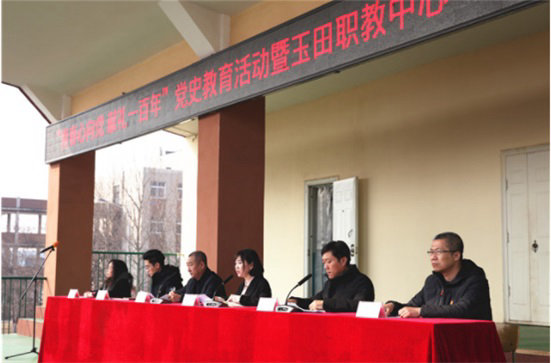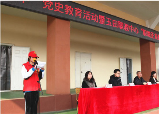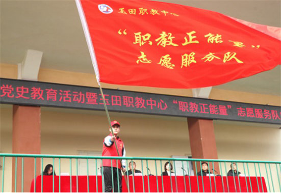 3月8日上午,我校在操场隆重举行了“青春心向党,献礼一百年”党史教育活动暨“职教正能量”志愿服务队活动启动仪式。共青团玉田县委副书记袁媛、副主任金奕金,玉田县教育局团队工作总辅导员王树芳出席,我校党总支书记、校长张铁庄,党总支委员、副校长张江,团委书记李跟升,五个专业部主任以及2700余名学生参加活动。