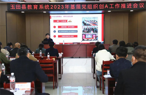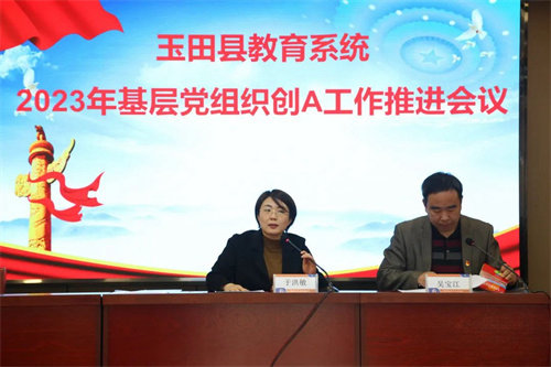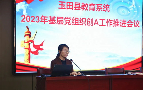3月23日,全县教育系统2023年基层党组织创A工作推进会议在我校召开。县教育局党组成员、副局长于洪敏出席会议,34所中小学校、幼儿园党组织书记、主管党建工作的副职领导共80余人参加了会议。
