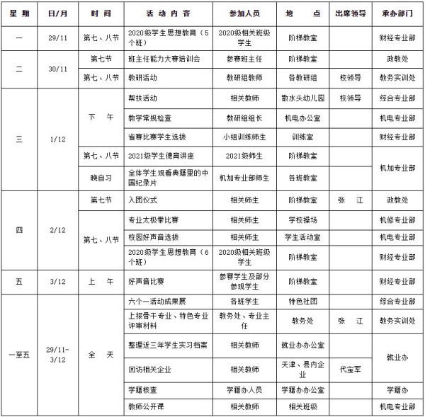 第十四周活动安排表【2021-11-29】