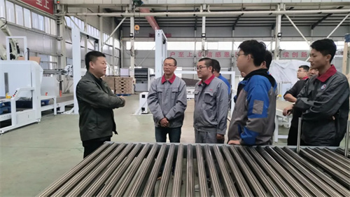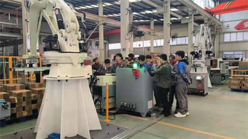唐山市东弘机械制造有限公司是一家主要经营印刷专用设备和包装专用设备制造的企业。在车间里,码垛机器人正在娴熟地进行作业,自动识别、抓取和堆码,整个流程井然有序。正在备战“智能制造设备技术应用”国赛赛项的学生和指导教师与企业技术骨干进行了深度交流,为大赛挖掘灵感,学习企业的新标准、新技术、新工艺,并融入比赛当中,使赛项操作更加贴近生产实际,进一步优化比赛操作流程和质量。