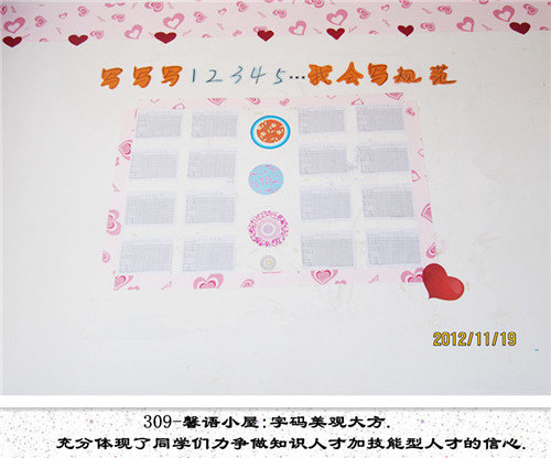为了积极推进校园文化建设,建立和谐融洽、富有特色的宿舍文化育人环境,自11月份开始,我校开展了“我爱我家,创先争优、争做文明示范宿舍”的宿舍文化建设活动。